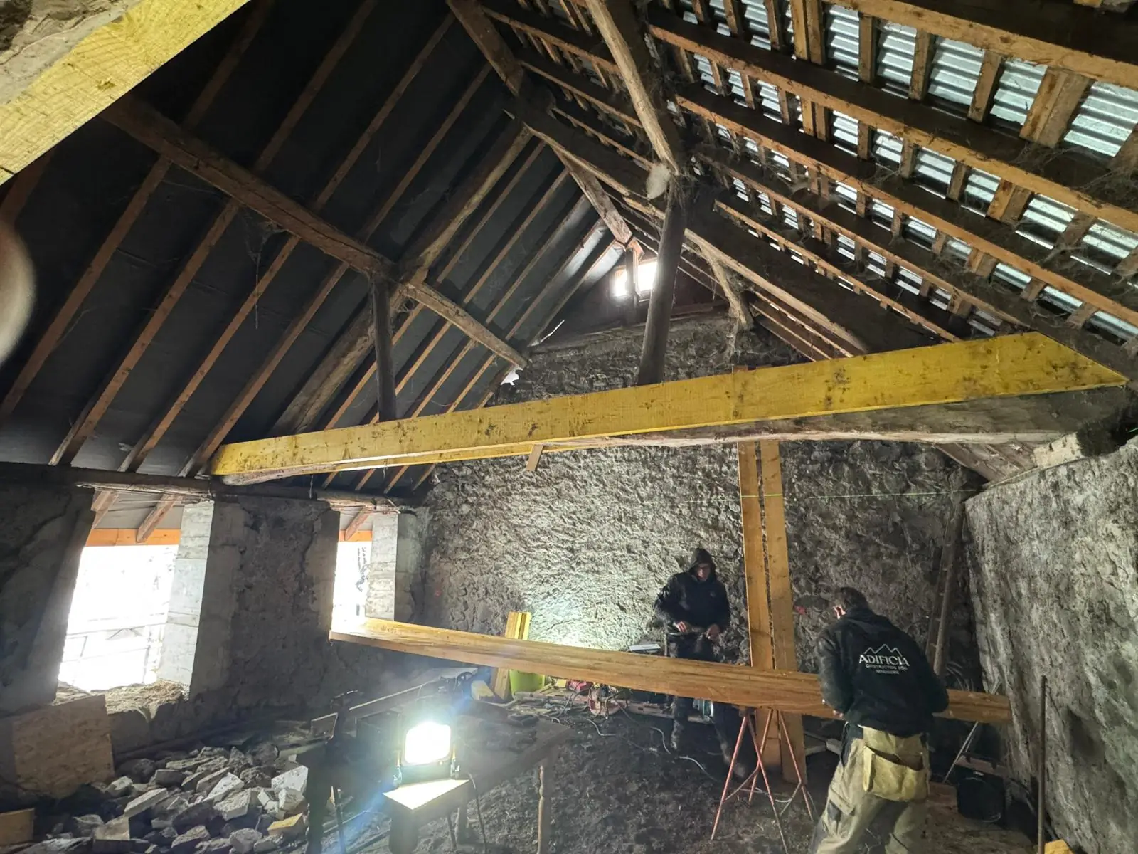 Un beau chantier de rénovation avec reprise complète de la structure existante.