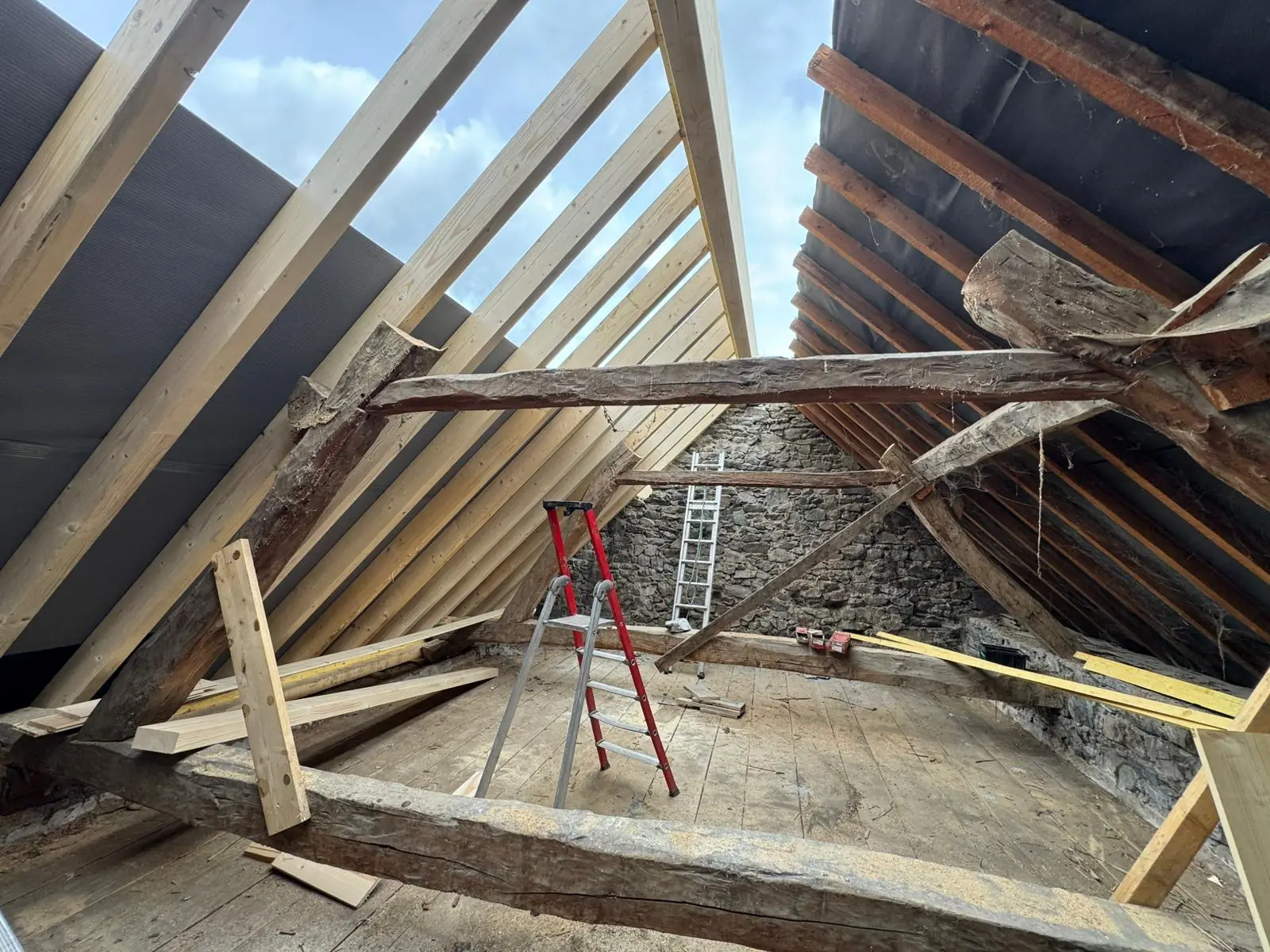 ⬝ Reprise et création d’une nouvelle charpente, un pan après l’autre